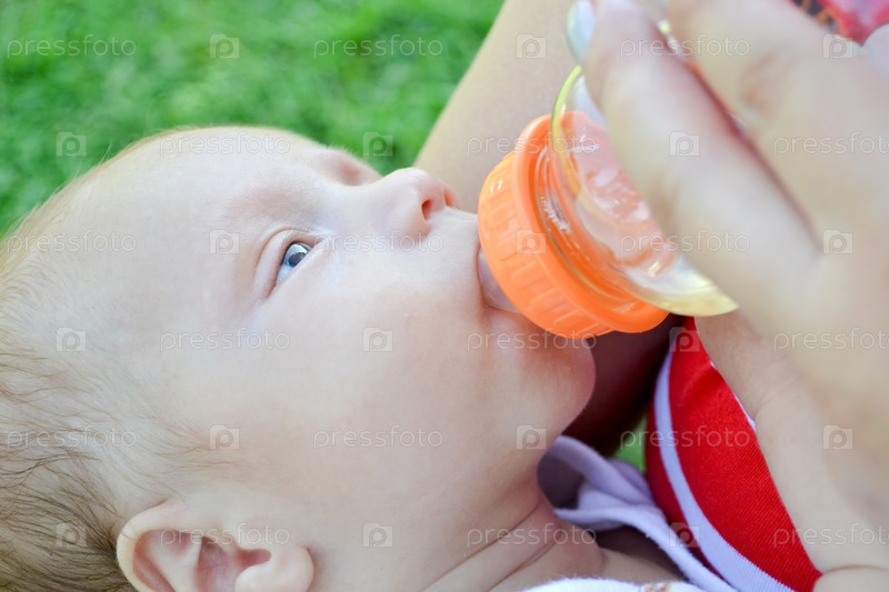 Младенца кормят из бутылочки