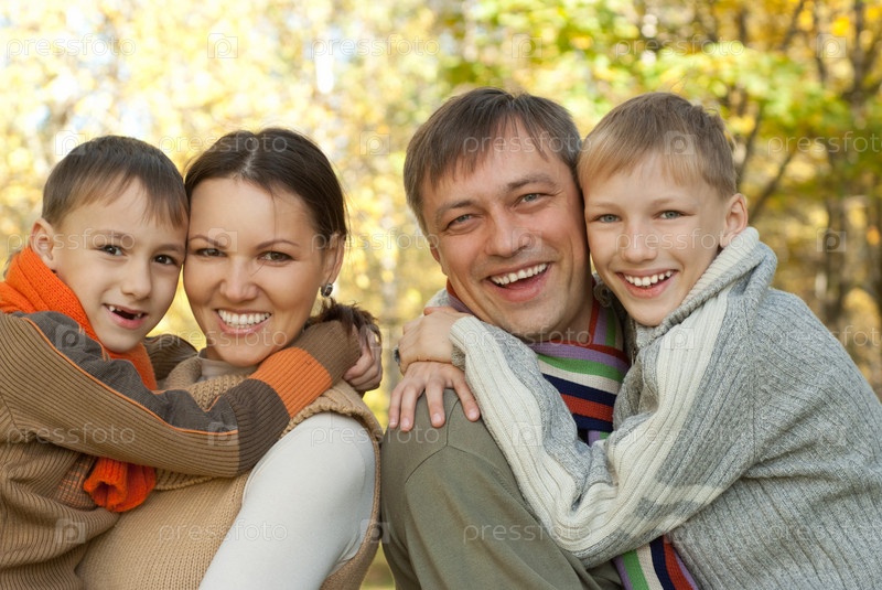 Портрет дружной семьи в осеннем парке