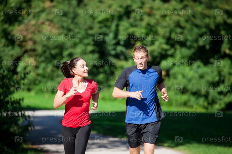 Женщина и мужчина на пробежке в парке