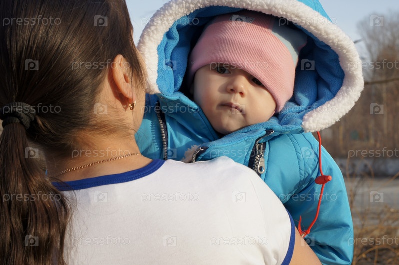 Мать гуляет с ребенком в парке
