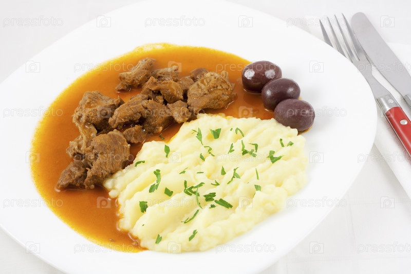 Гуляш из говядины с картофельным пюре