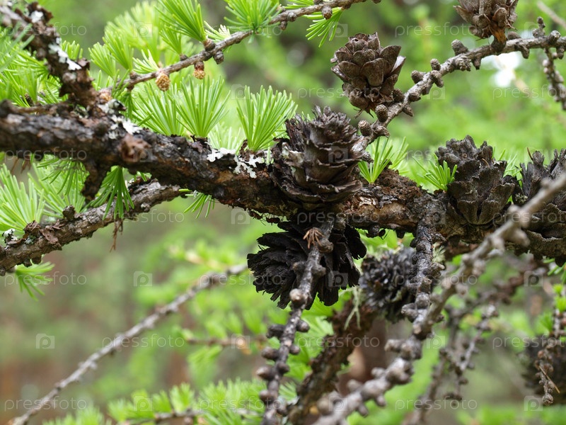 Шишки на ветке крупным планом