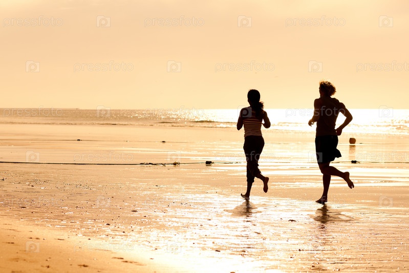 Пара на пробежке на пляже