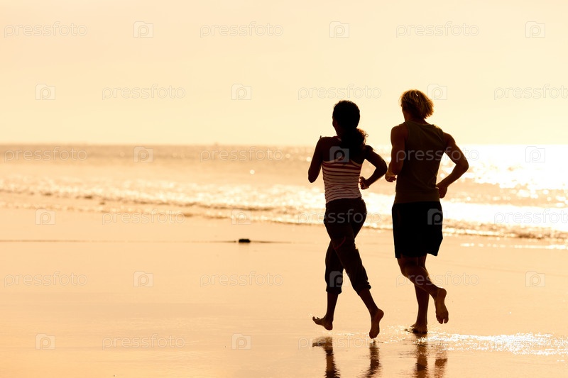 Пара на пробежке на пляже