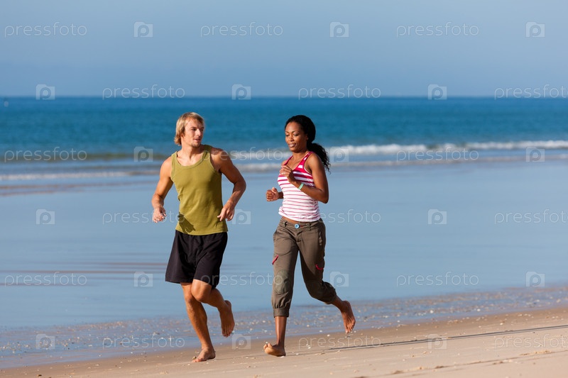 Пара на пробежке на пляже