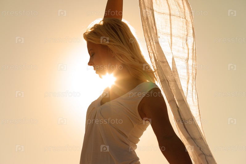 Девушка с парео на фоне неба
