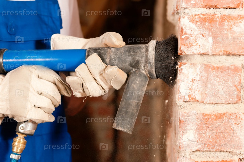 Мужчина зачищает кладку кирпича