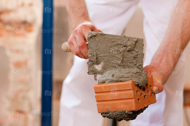 Строитель кладет кирпич