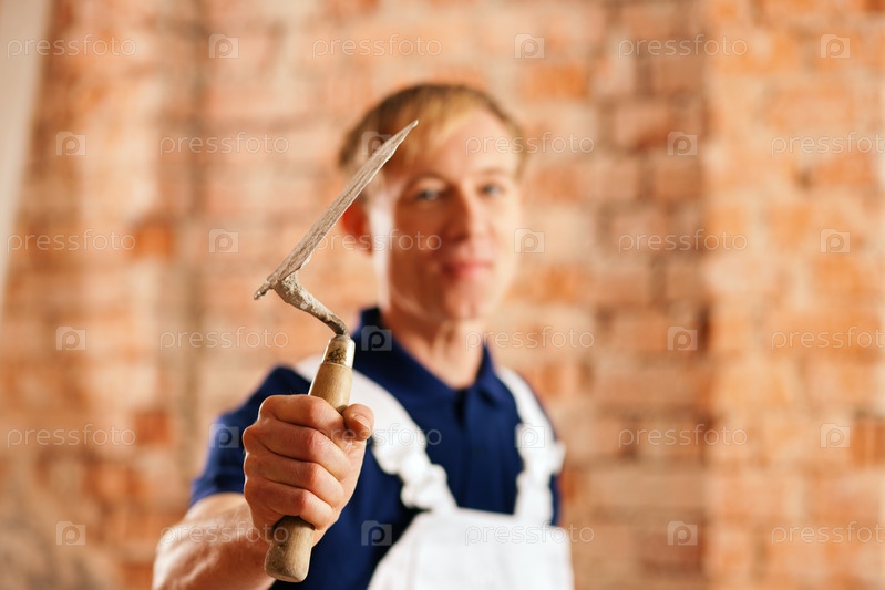 Строитель с мастерком в руке