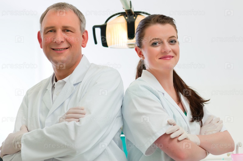 Врач-стоматолог и его ассистент в рабочем кабинете