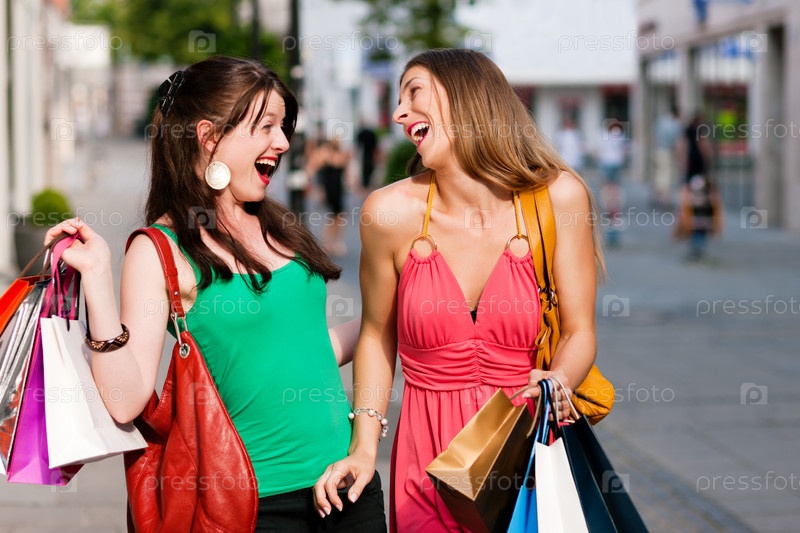 Молодые женщины с покупками на улице
