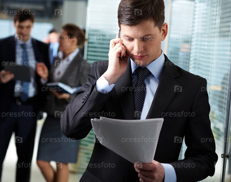 Успешный бизнесмен разговаривает по мобильному телефону