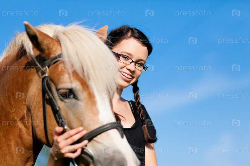 Девушка с лошадью на фоне неба