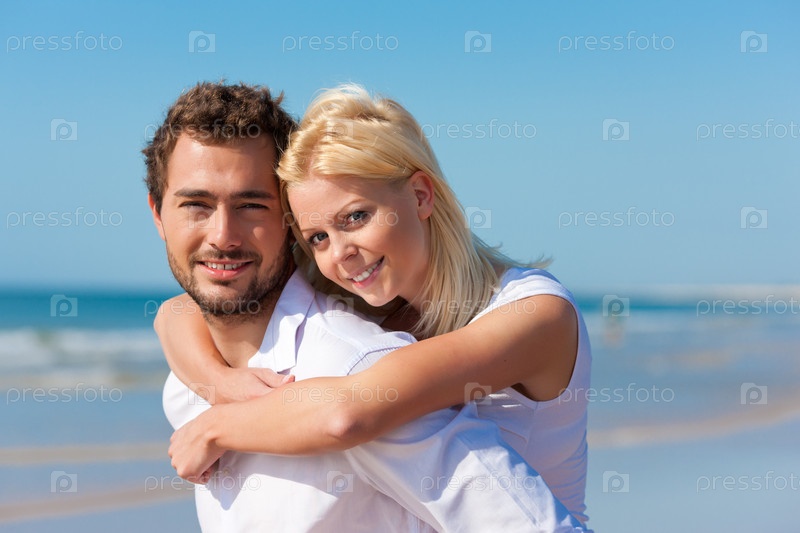 Молодая влюбленная пара на побережье моря