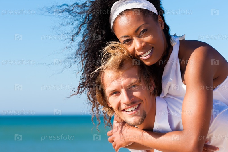 Молодая влюбленная пара на побережье моря