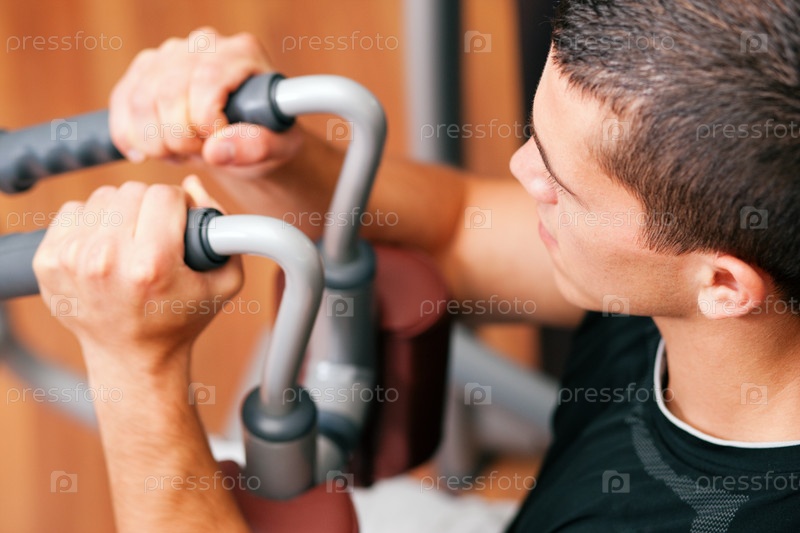 Мужчина на тренажере для укрепления рук