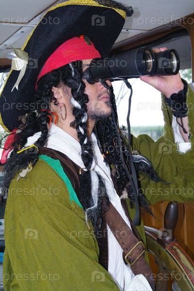 Актер в образе Джека Воробья в рубке парусного корабля Кастор-1, Москва