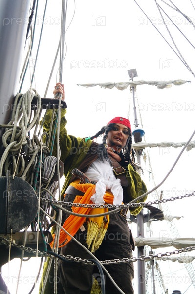 Актер в образе Джека Воробья на парусном корабле Кастор-1, Москва