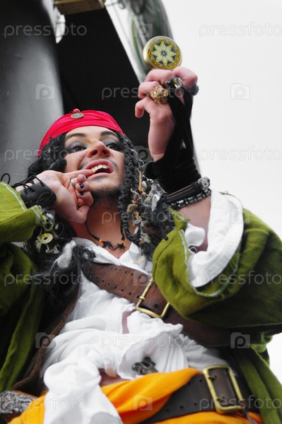 Актер в образе Джека Воробья на парусном корабле Кастор-1, Москва