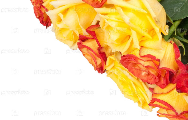 Желтые и оранжевые розы крупным планом
