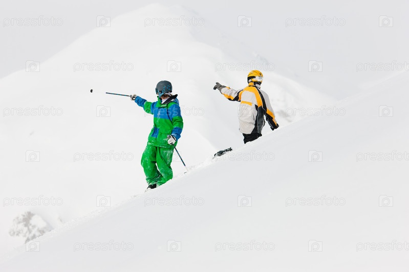 Горнолыжники на заснеженном склоне