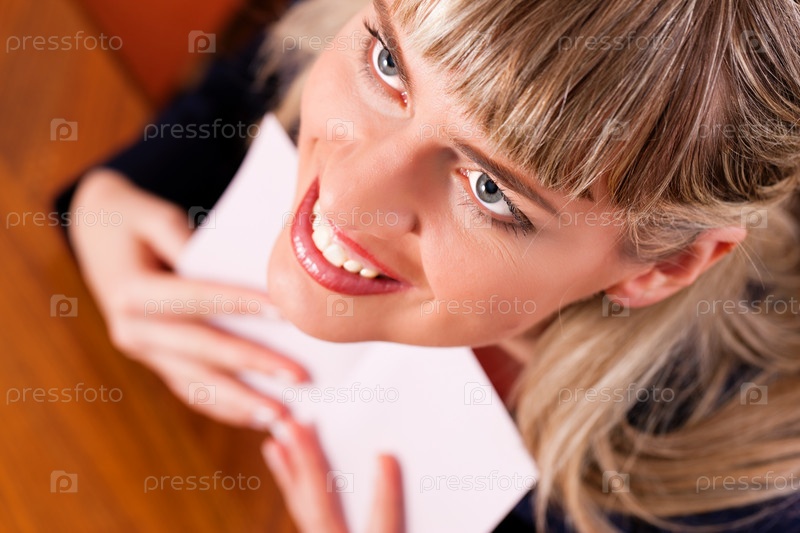 Красивая улыбающаяся женщина держит письмо
