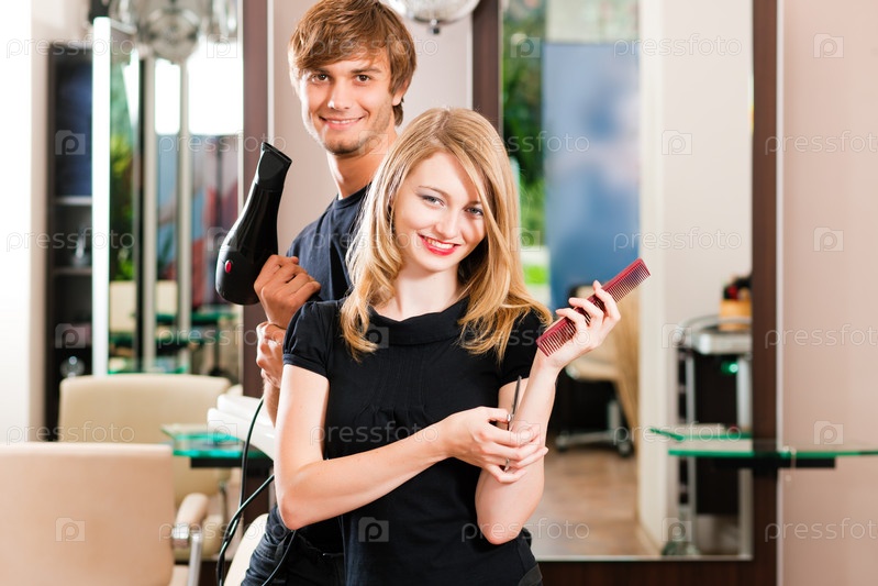 Парень и девушка в парикмахерской