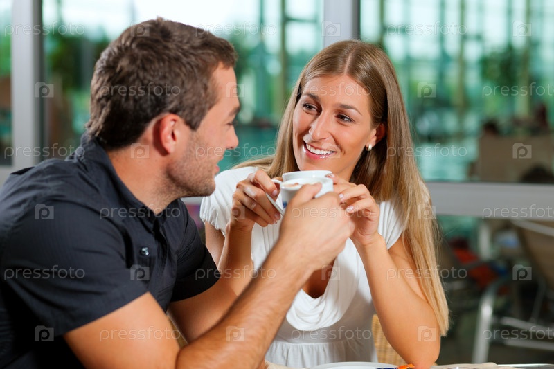 Молодой человек и девушка в кафе