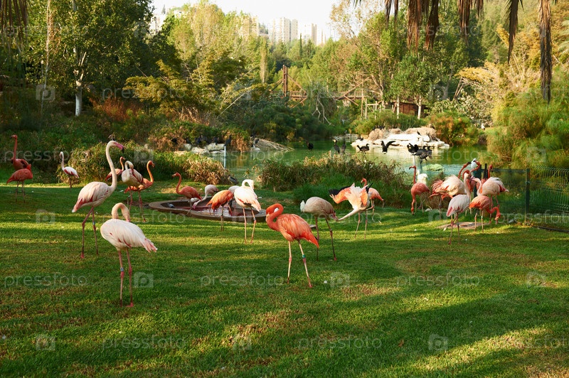 Розовый фламинго в Библейском зоопарке в Иерусалиме