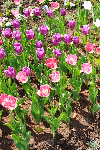 Фиолетовые тюльпаны на клумбе