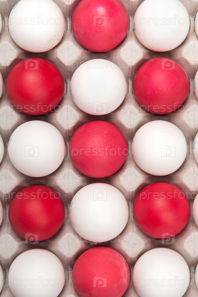 Белые и красные яйца в грохотке