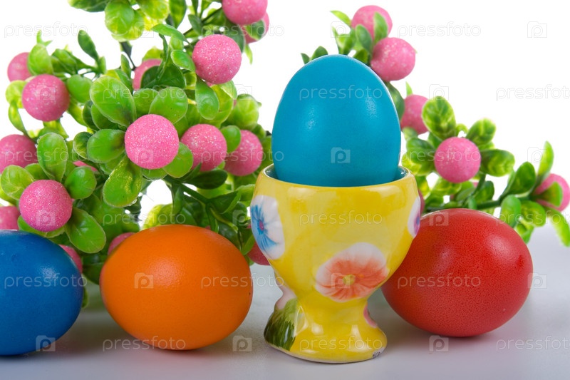 Пасхальные яйца на белом фоне