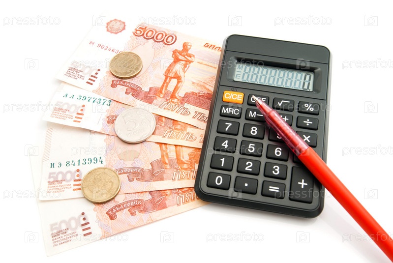 Калькулятор, банкноты и ручка