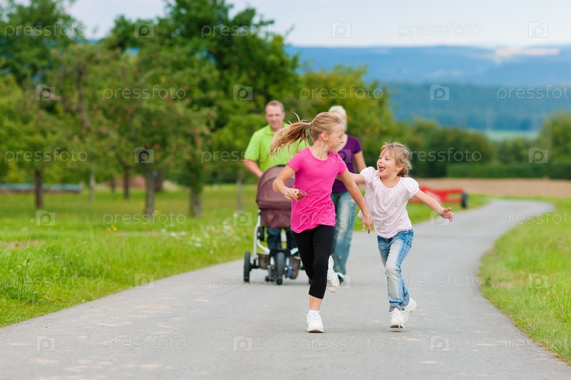 Счастливая семья, гуляющая в парке