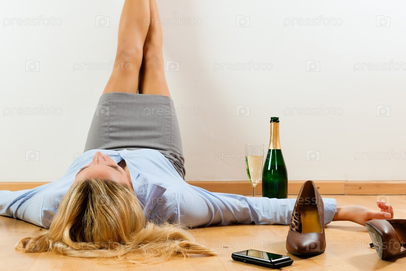 Девушка с шампанским на полу