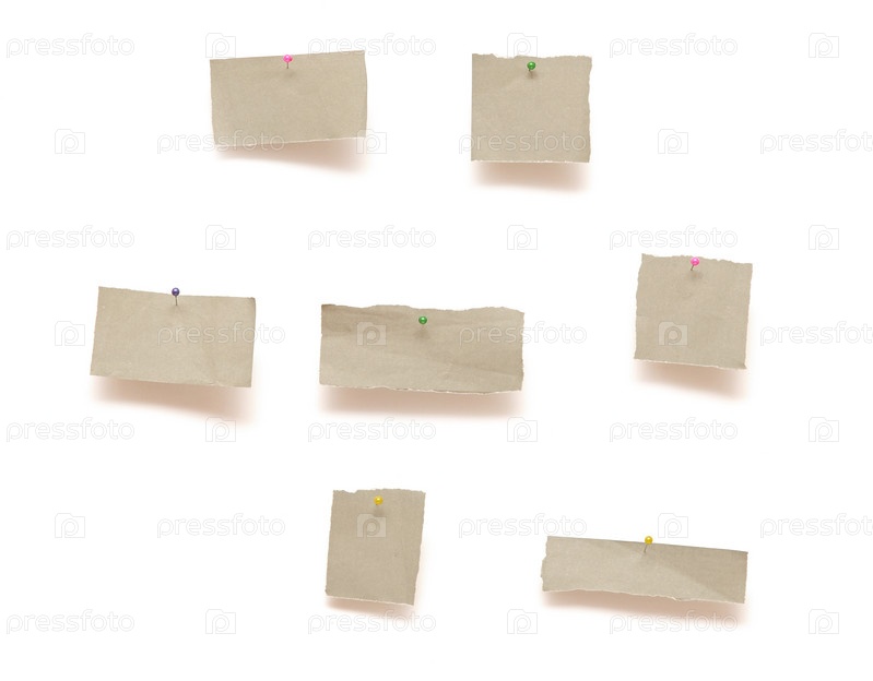 Куски бумаги, прикрепленные кнопками на белом фоне