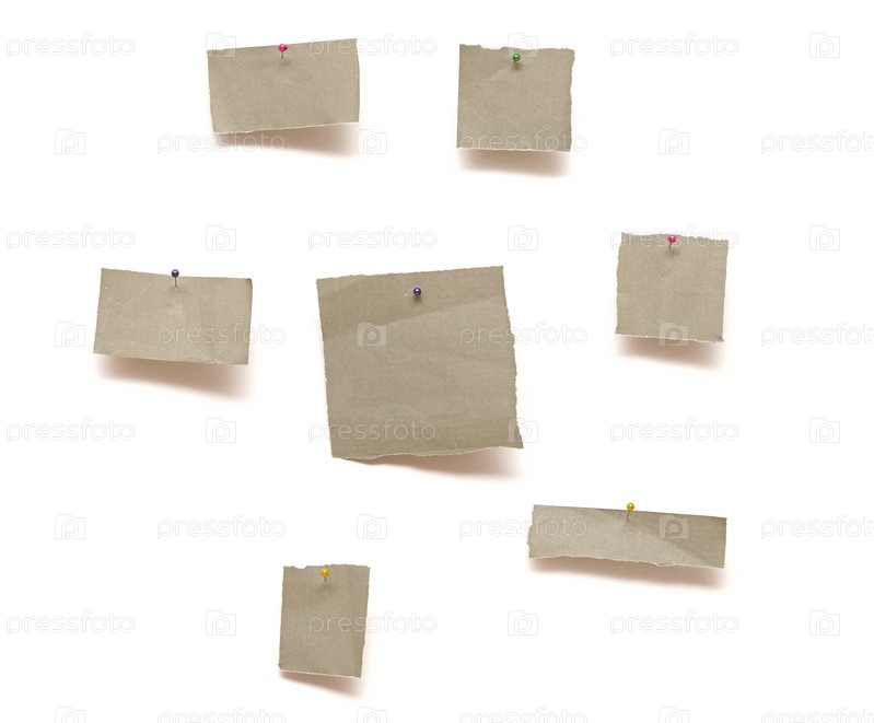 Куски бумаги, прикрепленные кнопками на белом фоне