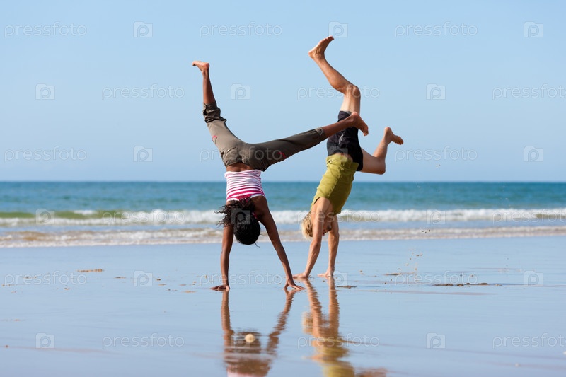 Молодые ребята на берегу моря