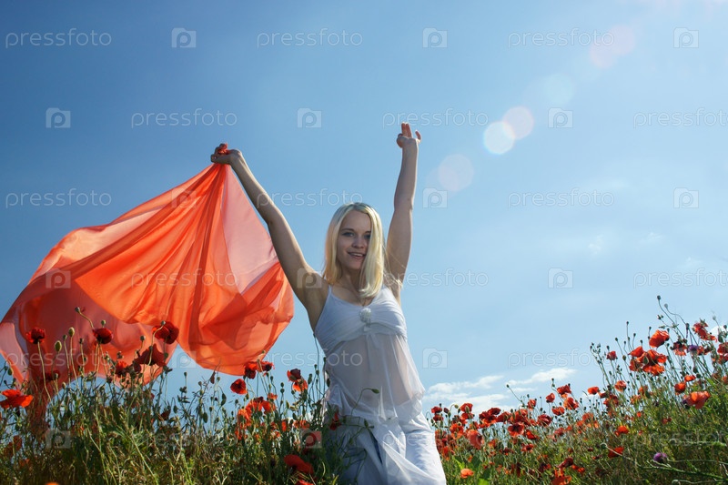 Девушка в поле с цветущими маками
