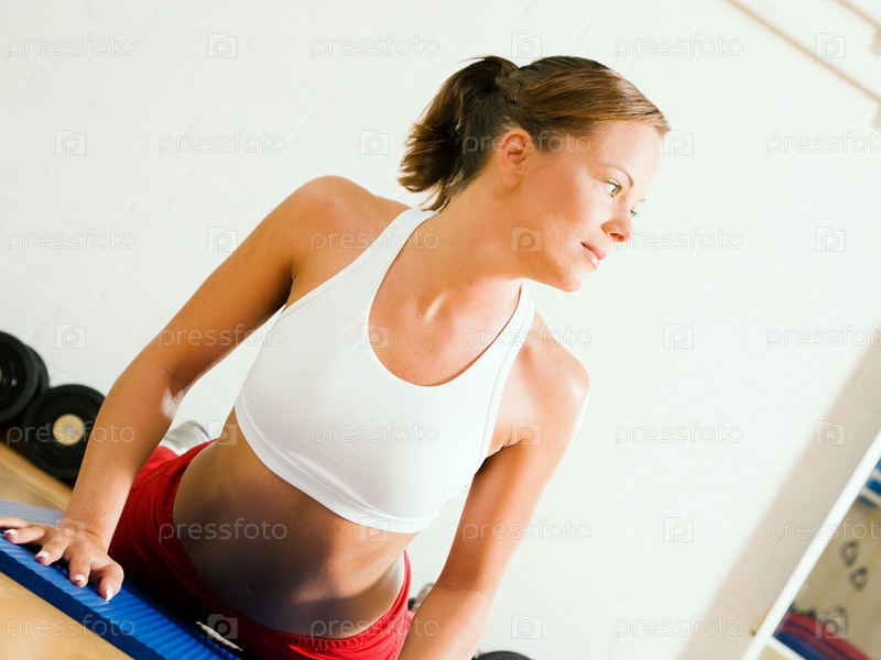 Девушка делает упражнение в спортзале