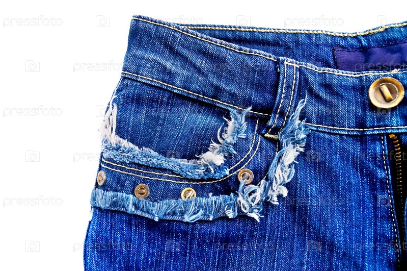 Часть джинсовых брюк с карманом, изолированная на белом фоне