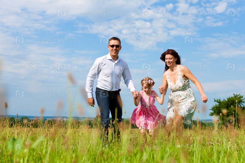 Счастливая семья на прогулке