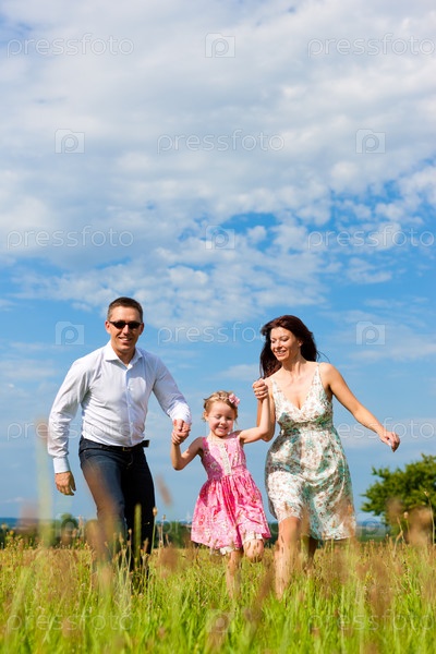 Счастливая семья на прогулке