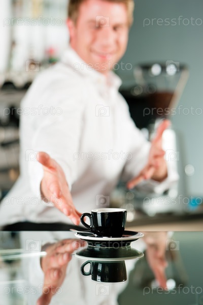 Бармен предлагает чашку кофе