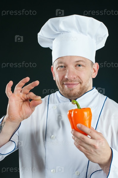 Шеф-повар с болгарским перцем в руках показывает жест ОК