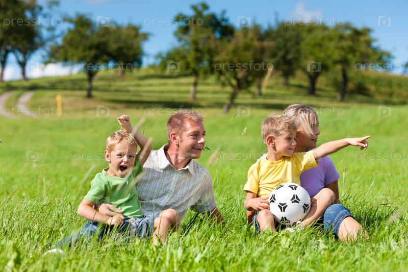 Семья отдыхает на свежем воздухе