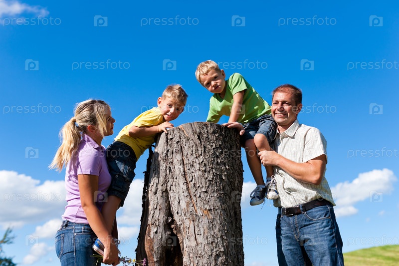 Семья отдыхает на свежем воздухе
