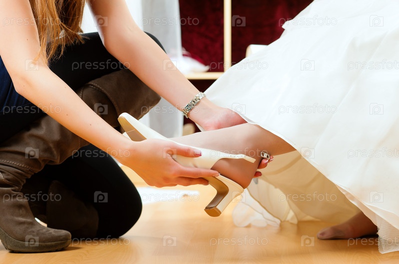 Невеста примеряет свадебные босоножки