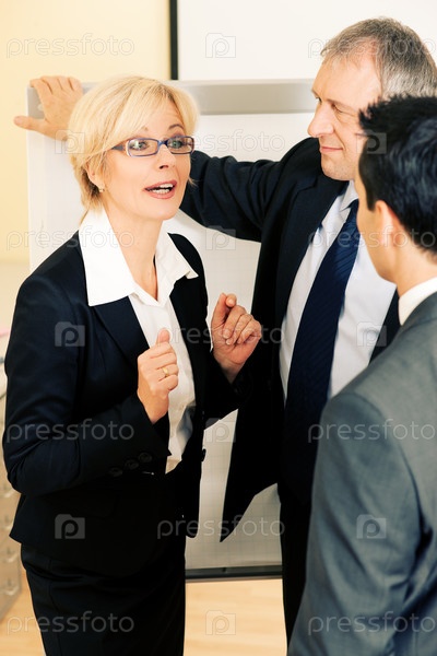 Деловая беседа двух бизнесменов и бизнес-леди