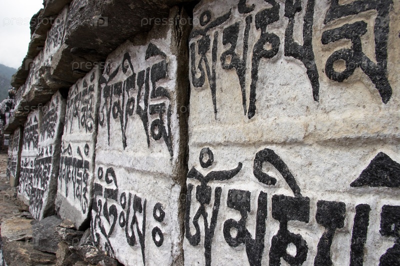 Буддистский мантра молитвенный камень на тропе Эвереста, Гималаи, Непал